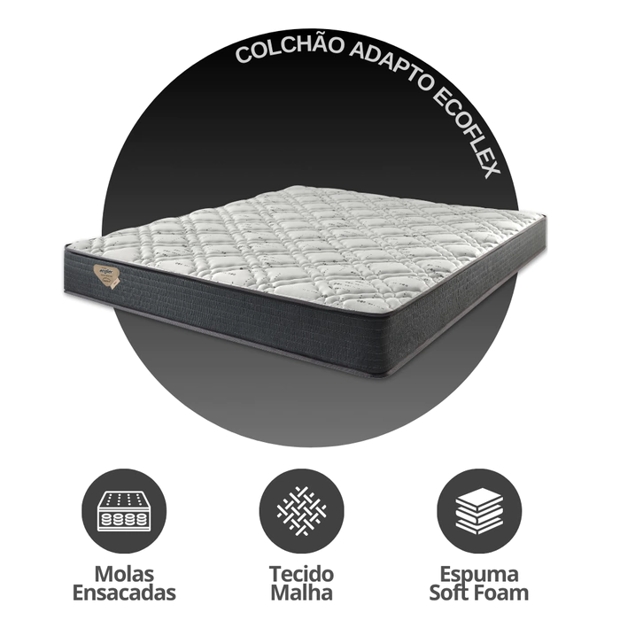 O Colchão Ecoflex Adapto foi desenvolvido para quem busca uma experiência de sono confortável, com sustentação precisa e um toque de responsabilidade ambiental. Com design contemporâneo, estrutura robusta e tecnologia que respeita o meio ambiente, esse modelo combina eficiência e bem-estar em um produto acessível e duradouro. Confira todos os detalhes que fazem do Ecoflex Adapto uma excelente escolha para noites tranquilas e regeneradoras.